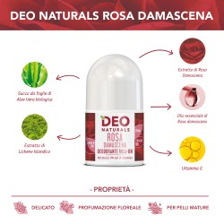 Deodorante roll-on con azione nutriente, grazie al prezioso olio di Rosa damascena estratto dai petali.